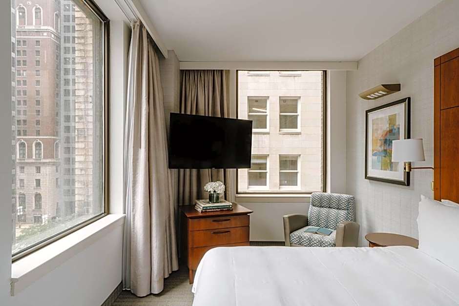 Há uma variedade de tipos de quarto disponíveis, incluindo Suíte, Deluxe, Standard Queen e Club. A Suíte acomoda até 8 adultos e 5 crianças, enquanto outras configurações, como Deluxe e Club, oferecem layouts flexíveis para diferentes tamanhos de grupo. Com milhares de avaliações que demonstram forte interesse dos viajantes, a propriedade combina comodidades práticas com uma animada cena de gastronomia no local para uma estadia memorável em Chicago.